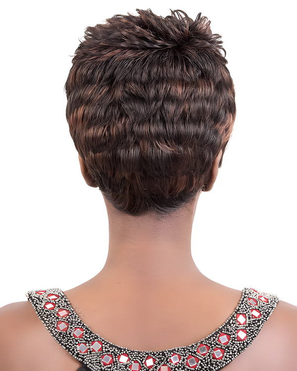 Short Curly Pixie Cut Wig – Natural Black Brown Layered Synthetic Wig for Women