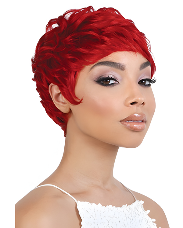 Vibrant Short Curly Pixie Wig – Bold Red Synthetic Hair with Side Bangs
