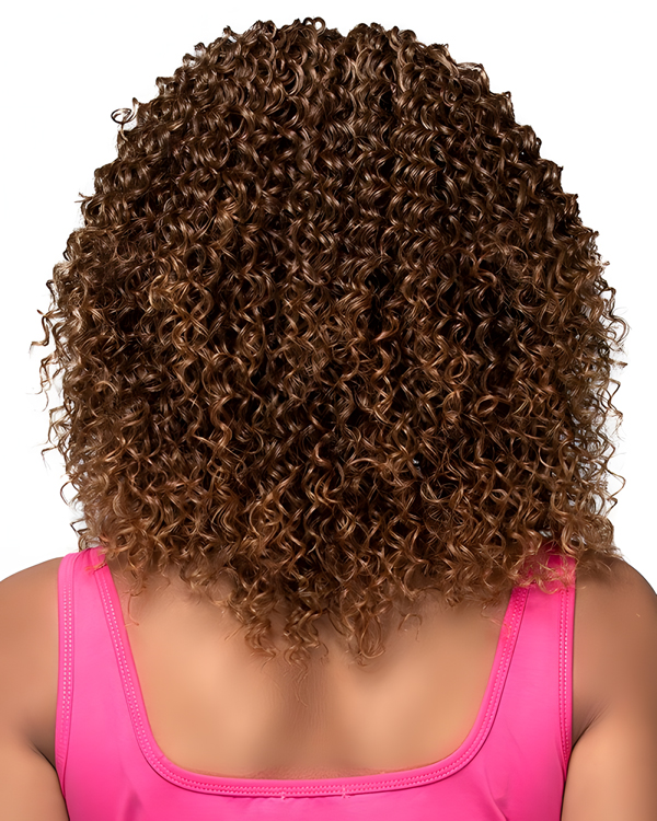 Short Kinky Curly Wig for Black Women – Natural Brown Afro Curls, Synthetic Glueless Lace Front Wig