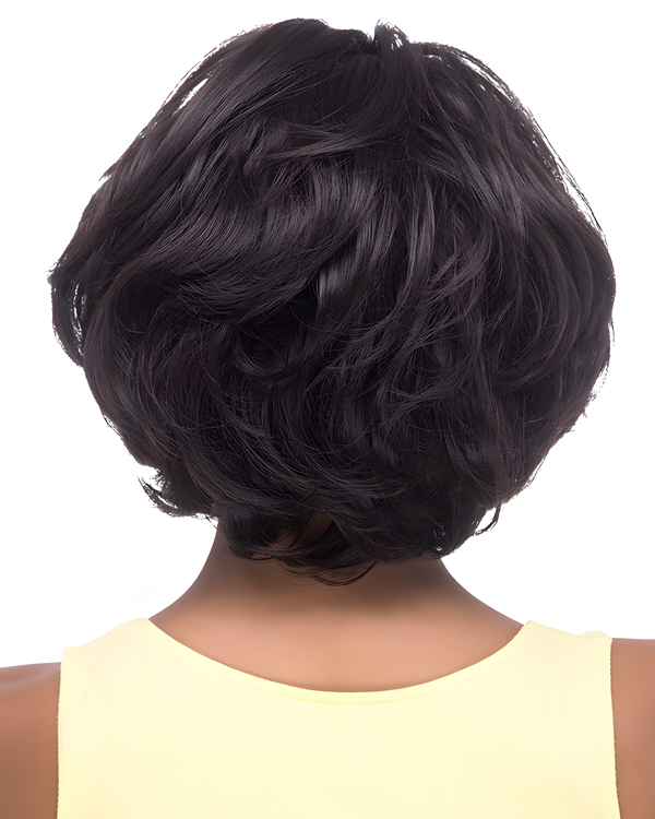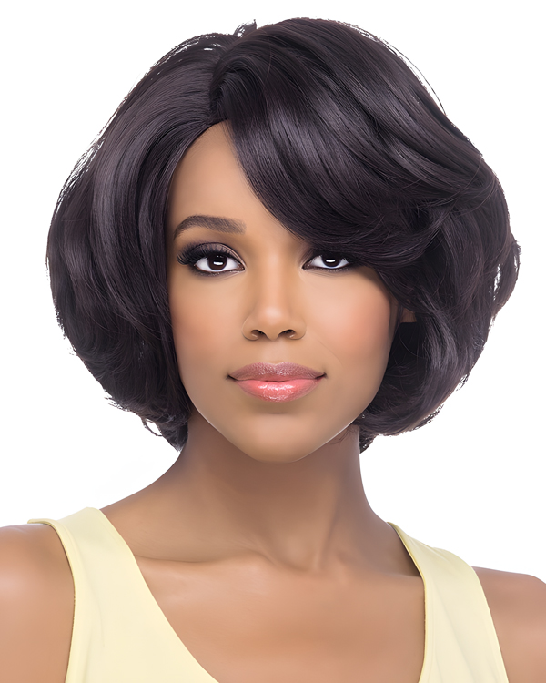 Short Layered Bob Wig with Side Bangs – Natural Black Volume Style