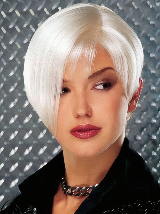 The wig is a seductive short styled bob cut and has a monofilament left part with a lace front that provides a very natural and real look.