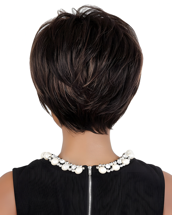 Short Pixie Cut Wig with Side Bangs for Black Women – Natural Looking Brown Highlights