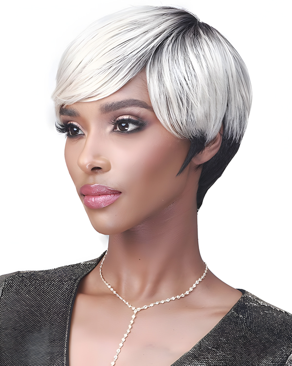 Short Silver Pixie Cut Wig for Women – Sleek Side Part Synthetic Hair, Natural Look