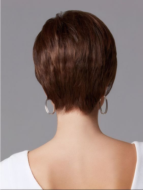 With piece-y bangs and added length in the top and sides for a slightly asymmetrical look, this short, sleek boy cut reflects one of the latest silhouettes offered in today's better salons.