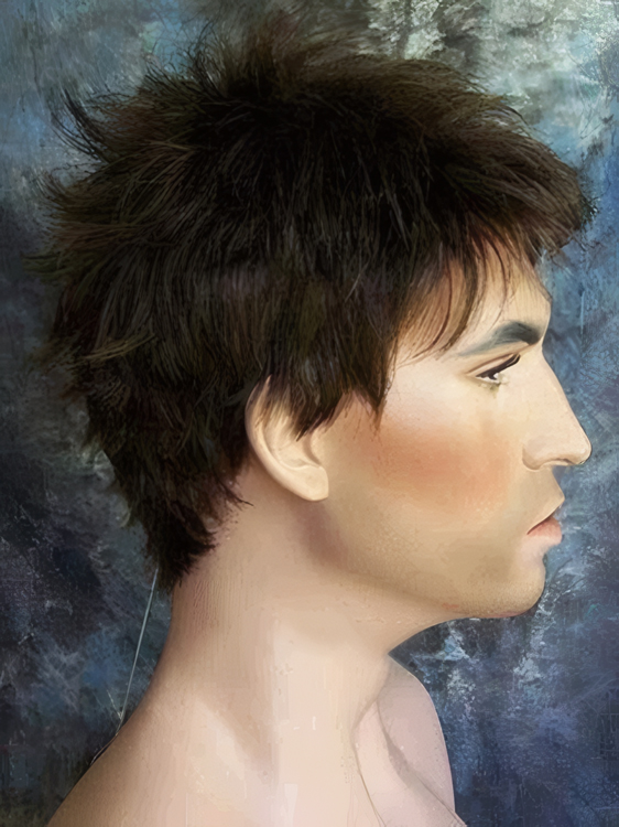 Natural-looking men's toupee with straight layers and capless construction for easy styling versatility. This toupee includes a cut-away base that allows for sizing the toupee. The toupee is crafted of short, straight Heat Friendly Synthetic Wig hair that maintains its handsome style all day long. Tapes or clips securely.