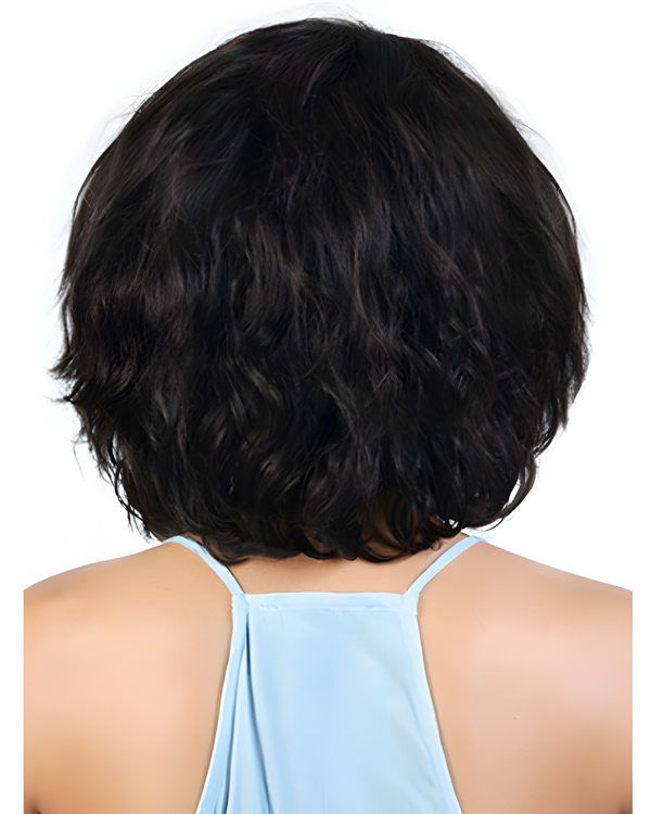 Natural Black Short Wavy Bob Wig with Side Bangs – Shoulder Length Synthetic Hair for Women