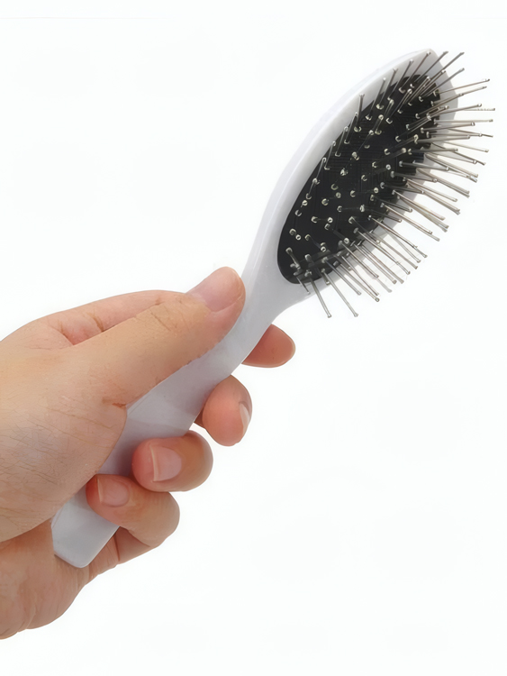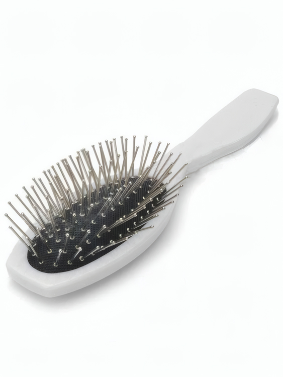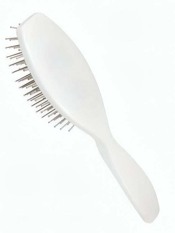 • This silver flat brush features fine stainless steel, ball-tipped bristles which are designed to comb through synthetic & remy human hair wig fiber without damage. Will not stretch or pull the fiber like regular hair brushes. Lifts and smooths fibers making styling a snap!
