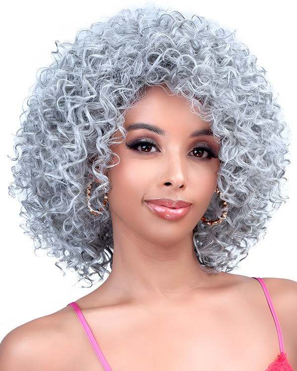 Silver Grey Afro Curly Wig for Women – Short Kinky Curly Synthetic Hair, Natural Voluminous Look for Cosplay, Party, Daily Wear