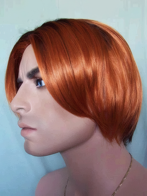Attractive men's toupee with straight layers and lace front construction for easy styling versatility and a completely natural-looking appearance. The toupee is crafted of short, straight Heat Friendly Synthetic Wig hair that maintains its style all day long. Tapes or clips securely.