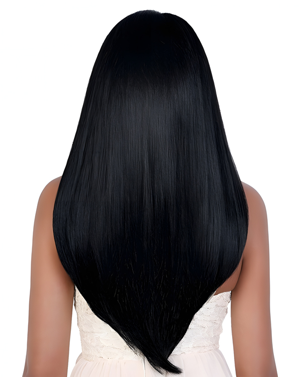 Sleek Long Straight Synthetic Wig – Natural Black Middle Part Heat-Resistant Hair for Women