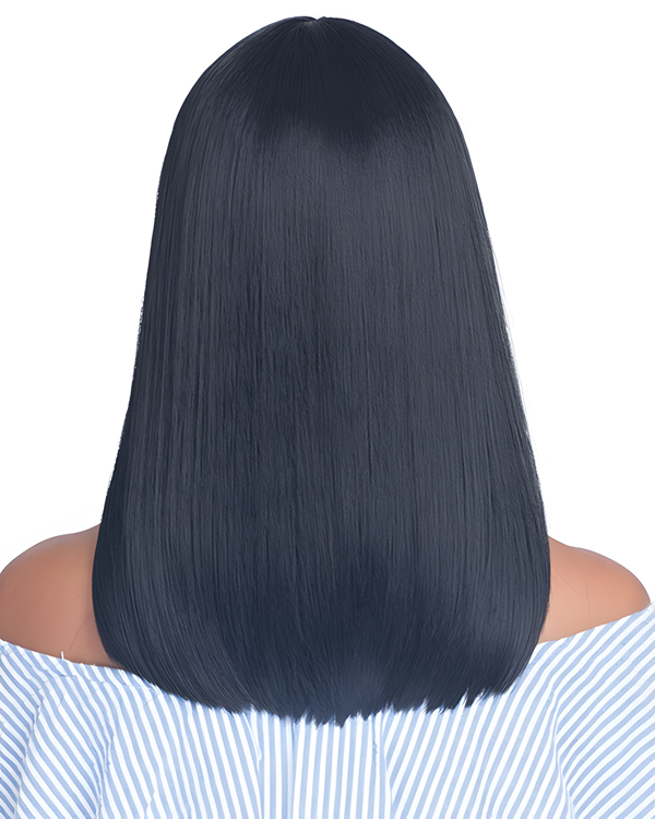 Sleek Straight Black Wig with Bangs – Long Natural Look Synthetic Wig for Black Women | Heat Resistant Fiber Hair for Daily Wear