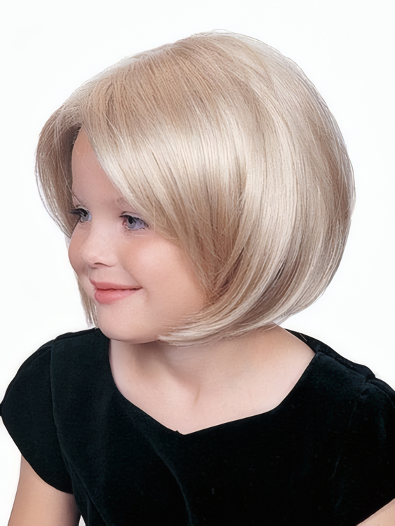 It is a lace front cap construction children's wig in a bob-style cut. This cute medium-length wig can be styled for a variety of cute looks. For best results, take the wig to a hair stylist to have it trimmed and layered to your child's face shape.