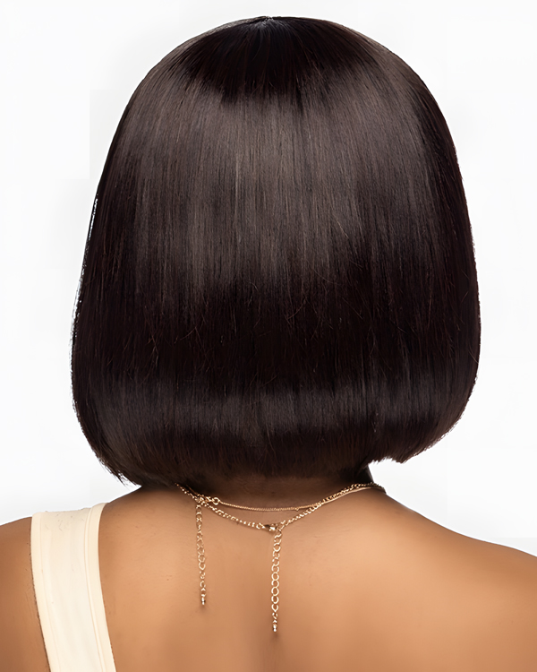Straight Bob Wig with Full Bangs for Black Women – Natural Dark Brown Synthetic Hair