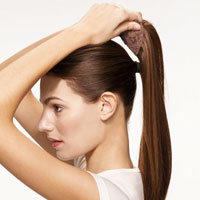 Step 3: Wrap Wrap base around ponytail. Wrap side section of hair around your ponytail, concealing the elastic and secure with a bobby pin (or two).