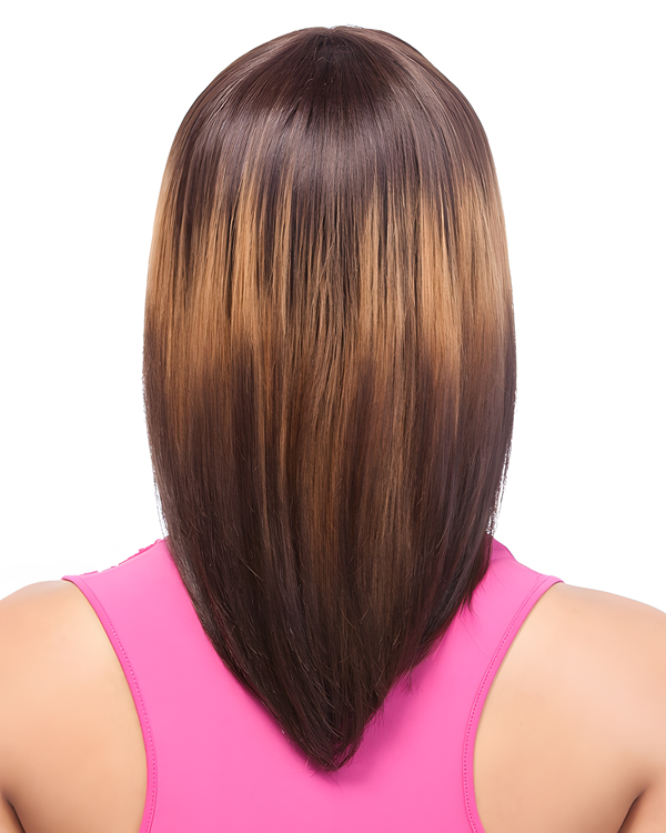 Straight Medium-Length Wig with Bangs – Ombre Brown Synthetic Hair Wig for Black Women, Natural Look, Heat Resistant Full Cap Wig