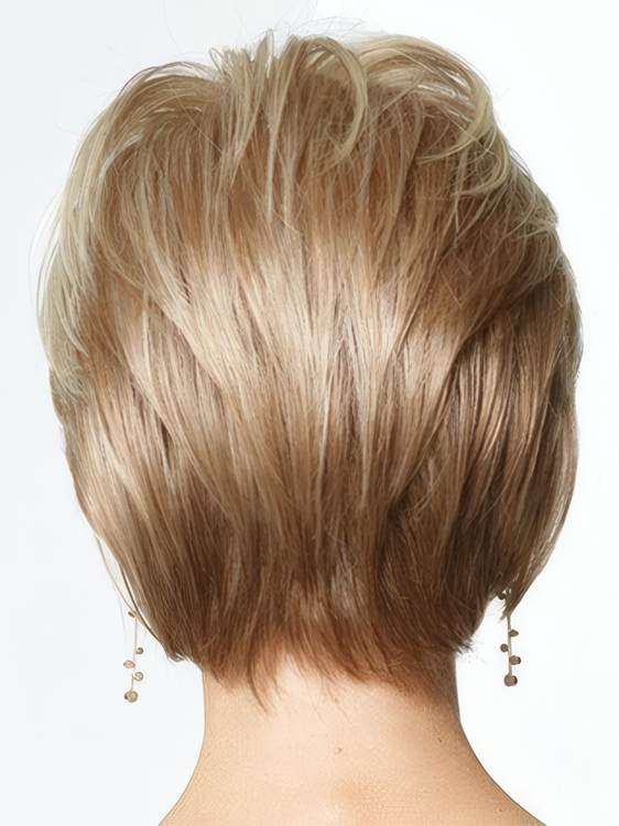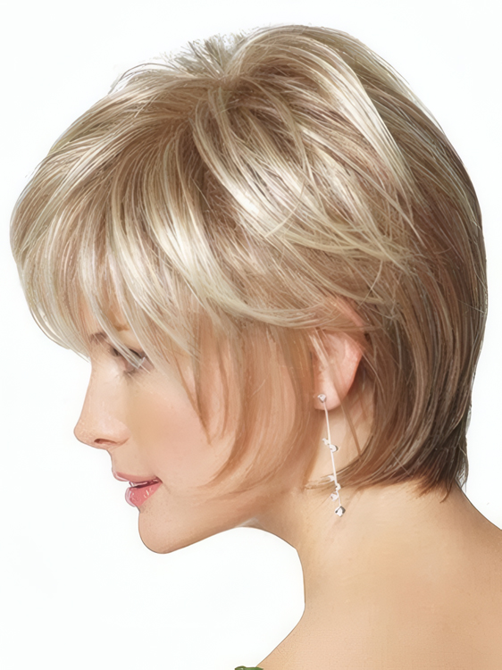 This Heat Friendly Synthetic Fashion Wig is a face framing shag with layered bangs reflecting the smooth, contemporary straight cuts seen on the latest fashion runways.