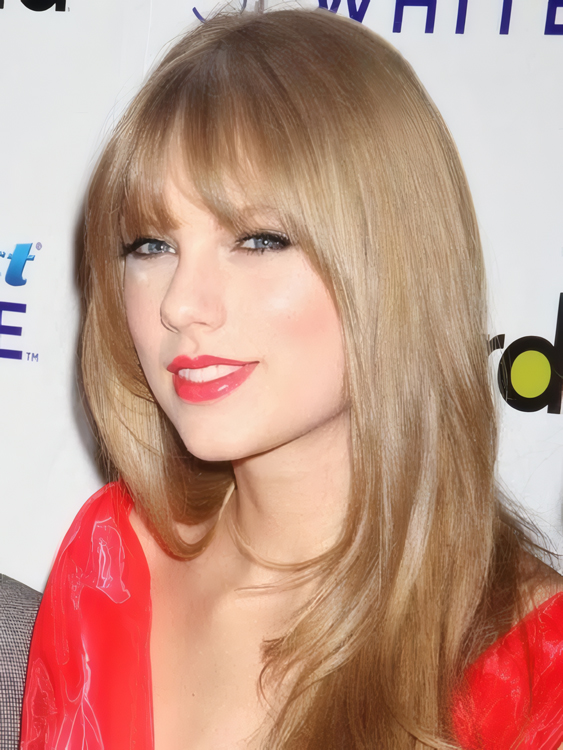 A Taylor Swift's natural straight long length wig with wispy full bangs. This wig is made from softest and most lightweight Heat Friendly Synthetic Wig fiber that feels like real hair, you don't have to worry about the styling.