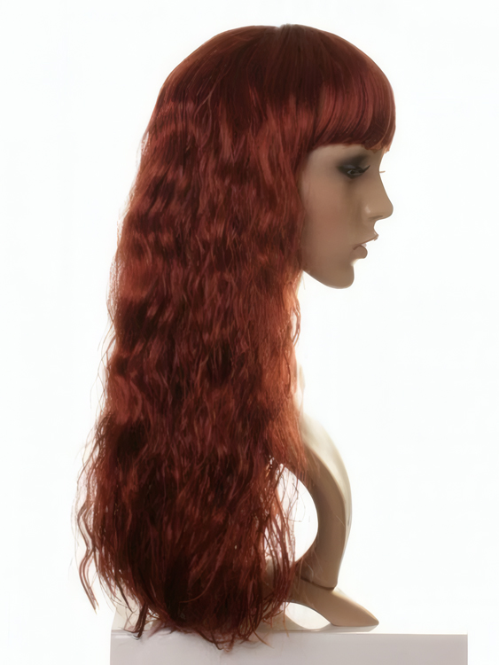 This luxurious wig is pre-styled with a crimp effect finish, it is long with a modern blunt cut fringe. A classic, but fashionable style.