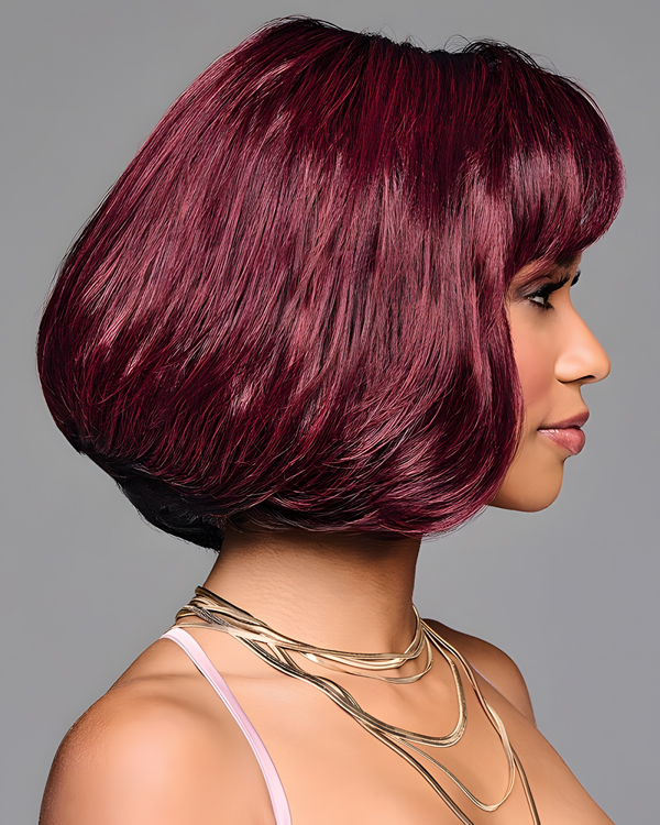Short Layered Bob Wig with Side Part – Wine Red Ombre Synthetic Hair for Bold & Glamorous Looks